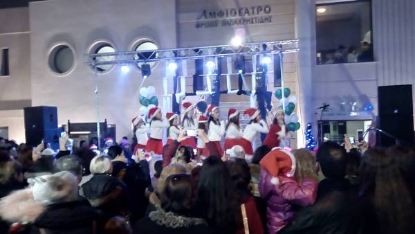 Πλήθος κόσμου παρακολούθησε την εκδήλωση για τη φωταγώγηση του Χριστουγεννιάτικου δέντρου του Δήμου Παγγαίου που πραγματοποιήθηκε στην Ελευθερούπολη μπροστά στο Δημαρχείο.