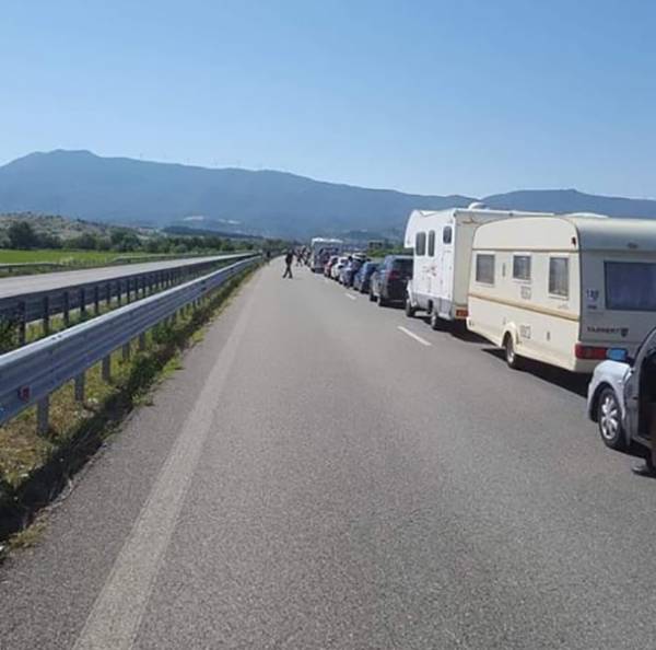Στις φωτογραφίες: πιστοί πελάτες του… brand «Ελλάδα» περιμένουν έως και 12 ώρες στα σύνορα για να ξεκινήσουν διακοπές εν μέσω πανδημίας, κάτω από τον καυτό ήλιο, είτε αντιμετωπίζοντας τσιμπήματα εντόμων στην περιοχή Kulata (Προμαχώνας) είτε καταναλώνοντας καύσιμα για να λειτουργούν τα κλιματιστικά τους. Οι περισσότεροι με τα ανήλικα παιδιά τους. Οι φωτογραφίες είναι από το newsbg.eu