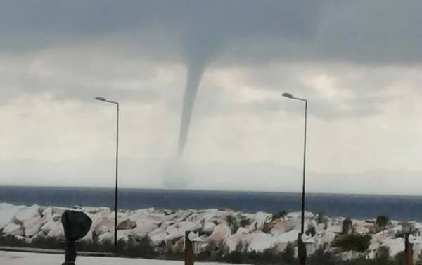 Ένας υδροστρόβιλος έκανε την εμφάνισή του και όσοι βρέθηκαν στην παραλία της περιοχής, αλλά και πιο μέσα στο χωριό έσπευσαν να τον απαθανατίσουν με τα κινητά τους τηλέφωνα.