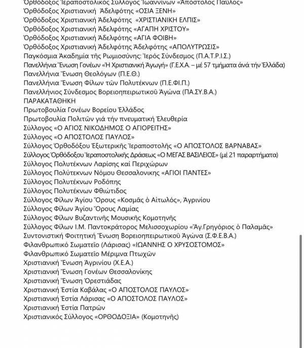 Την επιστολή, υπογράφουν 180 χριστιανικά σωματεία από όλη την Ελλάδα. Μεταξύ άλλων ζητούν από την Κυβέρνηση να τους επιτραπεί να επισκεφθούν τους ναούς και να τελέσουν τα θρησκευτικά τους καθήκοντα. “Εκείνο που ζητάμε είναι να μας δοθεί η δυνατότητα να καταφεύγουμε στους Ναούς μας! Να μπορούμε ν’ ανάψουμε ένα κερί. Να εξομολογηθούμε. Να λειτουργηθούμε. Να κοινωνήσουμε!”