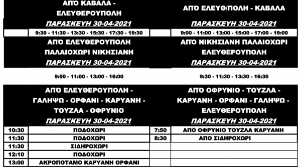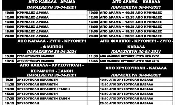 Δείτε τα δρομολόγια του Υπεραστικού ΚΤΕΛ για Καβάλα και Θάσο την Μεγάλη Εβδομάδα Τρί, 27/04/2021 - 15:36 Το Υπεραστικό ΚΤΕΛ Καβάλας τροποποιεί τα δρομολόγια του μέχρι και το την Παρασκευή 30 Απριλίου. Αναλυτικά: