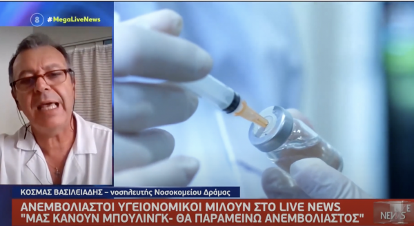 Επικαλούμενος πόρισμα μιας ομάδας αντιεμβολιαστών γιατρών, ο Κοσμάς Βασιλειάδης ισχυρίζεται στην κάμερα του LIVE NEWS τους λόγους που θεωρεί το εμβόλιο του κορωνοϊού άκρως επικίνδυνο.