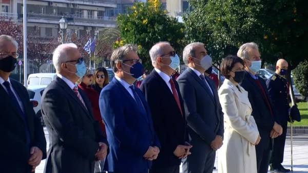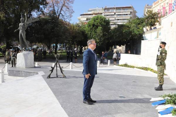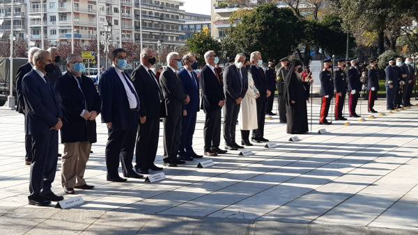 Ακολούθησε επιμνημόσυνη δέηση και κατάθεση στεφάνων στο μνημείο των ηρώων και κατάθεση στεφάνων.