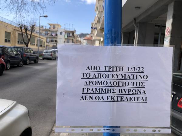 Ωστόσο από την Τρίτη 1 Μαρτίου το Αστικό ΚΤΕΛ έχει διακόψει το απογευματινό δρομολόγιο της γραμμής του Βύρωνα αφενός γιατί προετοιμάζει το κόσμο για την προσωρινή διακοπή της γραμμής και αφετέρου διότι τις απογευματινές ώρες το επιβατικό κοινό είναι λιγοστό με αποτέλεσμα να μην συμφέρει οικονομικά. Όσοι θέλουν να κατέβουν στην οδό Κολοκοτρώνη τις απογευματινές ώρες θα ακολουθούν τη γραμμή 11 και θα κατεβαίνουν στην περιοχή του Τιμίου Σταυρού.
