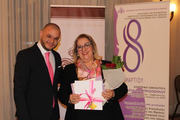Την εκδήλωση χαιρέτισε ο Περιφερειάρχης ΑΜΘ Χρήστος Μέτιος ο οποίος και παρέδωσε το τιμητικό βραβείο στην κυρία Λαμπροπούλου.