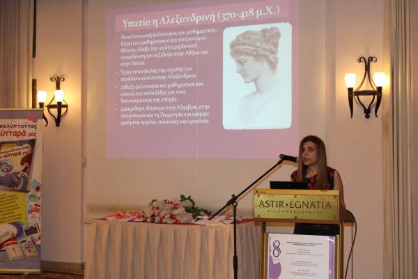 Κεντρική ομιλήτρια της εκδήλωσης, και μία από τις βραβευθείσες, ήταν η Καθηγήτρια Ιστολογίας – Εμβρυολογίας του Τμήματος Ιατρικής του Δημοκριτείου Πανεπιστημίου Θράκης Μαρία Λαμπροπούλου, η οποία στην ομιλία της ανέπτυξε το θέμα «Γυναίκες που άλλαξαν την Ιστορία».