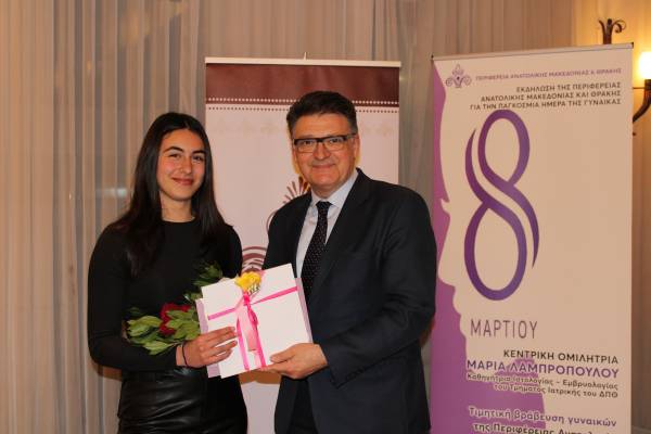 Είκοσι γυναίκες με πλούσια προσφορά στην επιστημονική, πολιτική, κοινωνική, οικονομική, πολιτιστική και αθλητική ζωή της Ανατολικής Μακεδονίας και Θράκης βράβευσε η Περιφέρεια ΑΜΘ, σε ειδική εκδήλωση που διοργάνωσε την Τρίτη 8 Μαρτίου στην Αλεξανδρούπολη, με αφορμή τον εορτασμό της Παγκόσμιας Ημέρας της Γυναίκας.