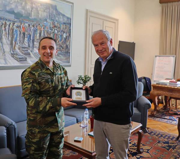 Ο δήμαρχος Καβάλας, Θόδωρος Μουριάδης, υποδέχθηκε σήμερα (Πέμπτη 7 Απριλίου 2022) στο γραφείο του τον νέο διοικητή της 20ης Τεθωρακισμένης Μεραρχίας, που εδρεύει στην Καβάλα, Υποστράτηγο Αθανάσιο Γαρίνη.