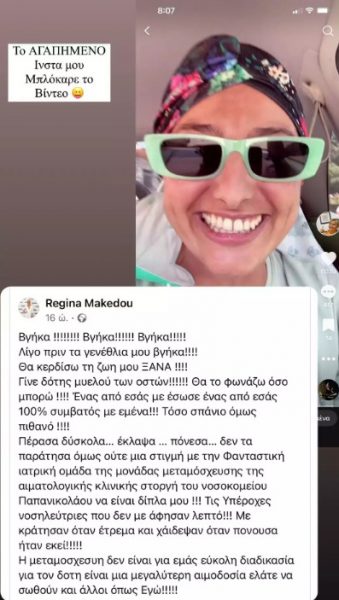 Ευχάριστα είναι τα νέα για την Ρεγγίνα Μακέδου. Έδωσε τη δική της μάχη με τη λευχαιμία και τα κατάφερε ξανά.