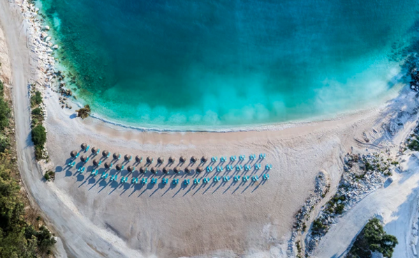 Το απόλυτο μαρμάρινο λευκό στα βότσαλα της παραλίας έρχεται σε πλήρη «συμφωνία» με το τιρκουάζ των νερών του Αιγαίου, δημιουργώντας ένα μαγικό τοπίο που κόβει την ανάσα.