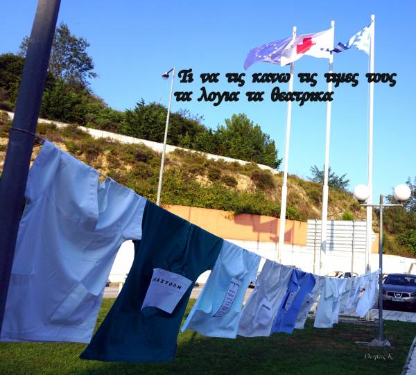 Το πρωί προχώρησαν σε μία διαφορετική διαμαρτυρία στον περιβάλλοντα χώρου του Νοσοκομείου. Άπλωσαν τις στολές τους σε σκοινιά, με το σύνθημα αυτές οι στολές πρέπει να ξαναφορεθούν.