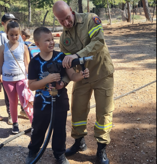 Οι μαθητές αγωνίστηκαν σε πυροσβεστικά Αθλήματα και διασκέδασαν μαζί με τους πυροσβέστες και τον Καπνούλη (την μασκότ του Πυροσβεστικού Σώματος).