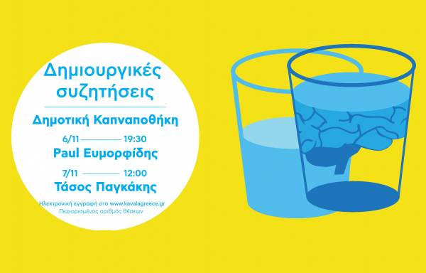 Αρχίζουν από το βράδυ της Παρασκευής 6 Νοεμβρίου 2015 οι «Δημιουργικές Συζητήσεις» που διοργανώνει η Δημοτική Κοινωφελής Επιχείρηση του Δήμου Καβάλας «Δημωφέλεια». Οι συζητήσεις θα γίνουν στο χώρο της Δημοτικής Καπναποθήκης, στην πλατεία Καπνεργάτη, σύμφωνα με το παρακάτω πρόγραμμα.