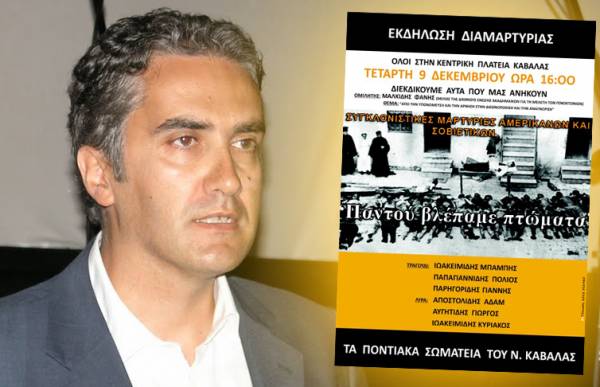 Εκδήλωση διαμαρτυρίας διοργανώνουν την προσεχή Τετάρτη 9 Δεκεμβρίου 2015 τα ποντιακά σωματεία της Καβάλας στο αμφιθέατρο της πρώην Νομαρχίας.