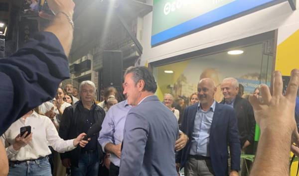 Δεν τον βρήκε εκεί, καθώς είχε φύγει για συνέντευξη σε τοπικό κανάλι, αλλά συνεχάρη τους συνεργάτες του.