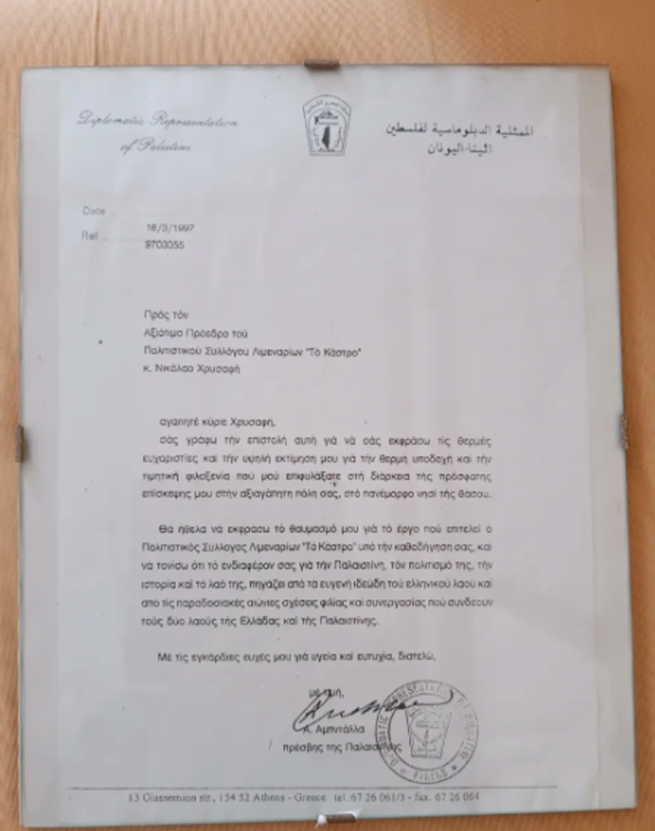 • το 1997 προσκαλέσαμε κ φιλοξενήσαμε τον τότε πρέσβη της Παλαιστίνης  στην Ελλάδα κ Α.Αμπντάλα