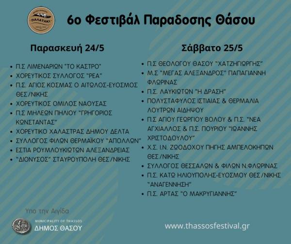 Το Φεστιβάλ παράδοσης Θάσου επιστρέφει για μία ακόμη χρονιά και θα γίνει το διήμερο 24-25 Μαΐου.