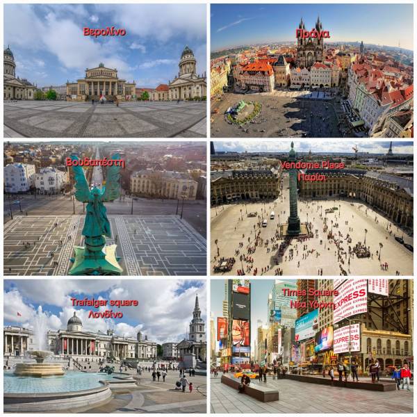 Έψαξα και βρήκα κάποιες κεντρικές πλατείες από κοντινές ή παρόμοιες πόλεις με τη δική μας ή από κάποιες πόλεις του εξωτερικού. Αυτό δεν σημαίνει πως κι εκεί δεν υπάρχουν πάρκα με δένδρα και πράσινο. Οι πλατείες τους όμως, έχουν περιορισμένα ή καθόλου δένδρα.