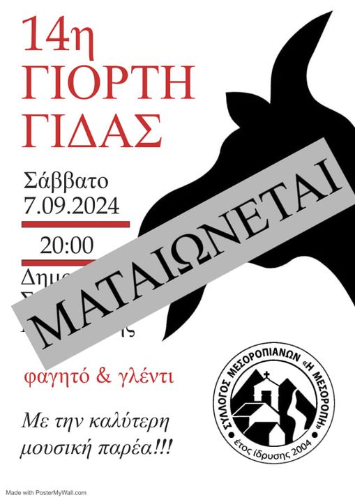 Η 14η γιορτή της γίδας στη Μεσορόπη ματαιώθηκε λόγω της πυρκαγιάς στο όρος Παγγαίο. Η γιορτή θα γινόταν το Σάββατο 7 Σεπτεμβρίου.