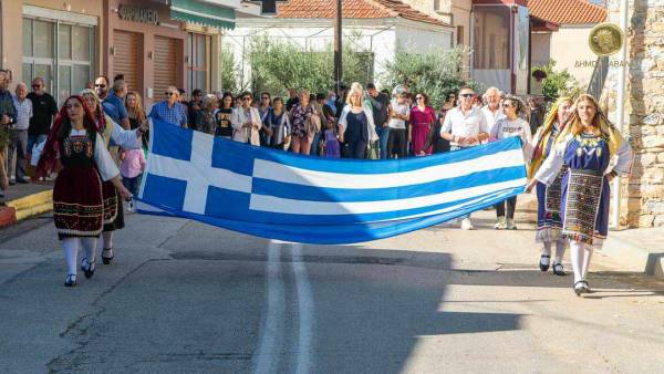 Μετά την Θεία Λειτουργία που τελέστηκε στον Ιερό Ναό Κοιμήσεως της Θεοτόκου παρέλασαν οι μαθητές του Δημοτικού Σχολείου Φιλίππων, τα μέλη του Πολιτιστικού