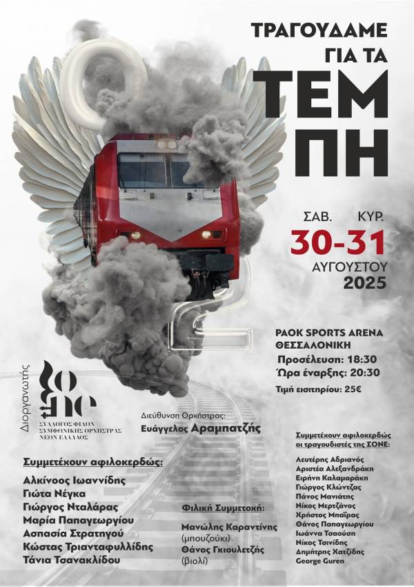 Δύο συναυλίες αφιερωμένες στη μνήμη των 57 θυμάτων του σιδηροδρομικού δυστυχήματος στα Τέμπη, διοργανώνει η Συμφωνική Ορχήστρα Νέων Ελλάδος στη Θεσσαλονίκη.