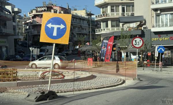 Σε δυο εβδομάδες περίπου ολοκληρώνεται το έργο του κυκλικού κόμβου μπροστά από τις Καμάρες στην οδό Κουντουριώτου.