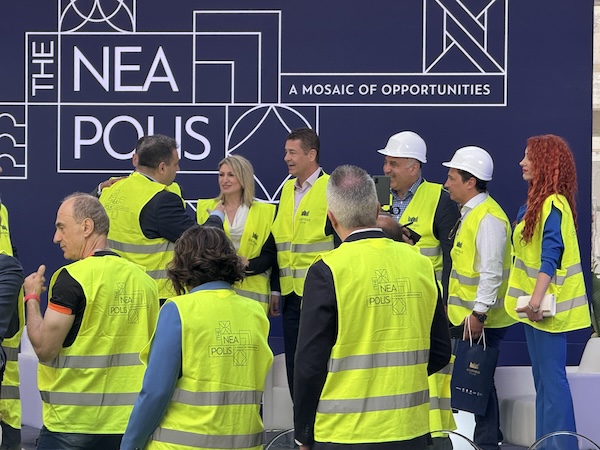 Μάλιστα ο όμιλος είχε φροντίσει όλοι οι προσκεκλημένοι στην παρουσίαση να εξοπλιστούν με κίτρινο γιλέκο και κράνος για την πρόσβαση μέσα στο εργοτάξιο.