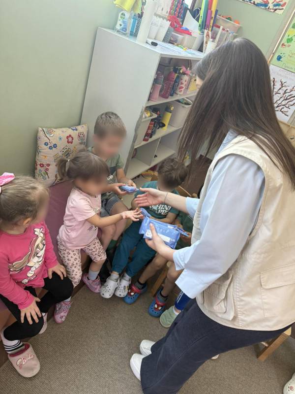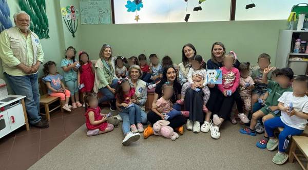 Η επίσκεψη ολοκληρώθηκε με τη διανομή αναμνηστικών δώρων και ειδών ατομικής υγιεινής στα μικρά παιδιά.