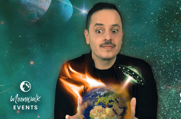 Για 90 και βάλε λεπτά, προσγειώνεται επί σκηνής και σκορπά γέλιο βγαλμένο από αυτό τον πλανήτη και τις πιο σκοτεινές καταστάσεις…