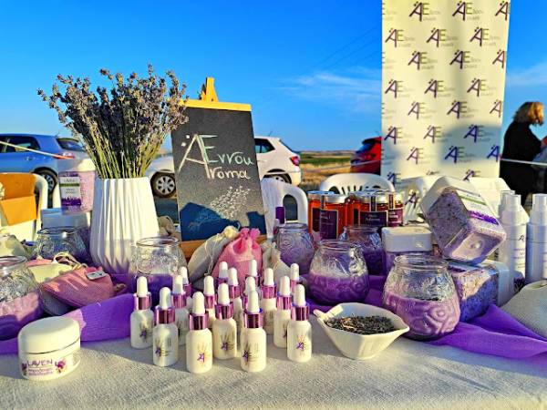 Είτε σε τσάι , λεμονάδες, σιρόπια ή λικέρ, η λεβάντα προσθέτει μια ξεχωριστή τοπική πινελιά. Από το λουλούδι της λεβάντας οι δυο νέοι επιχειρηματίες στην οικοτεχνία τους (με τη βοήθεια του ΚΟΙΝΣΕΠ) παράγουν αρώματα, αιθέρια έλαια, τσάι και σαπούνια.