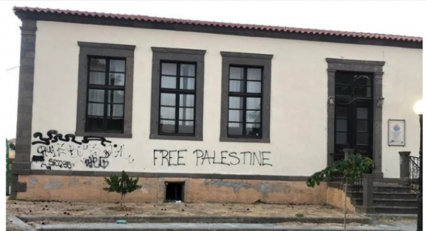 Μία ανάρτηση έκανε ο Στέλιος Ρόκκος με αφορμή το σύνθημα «Free Palestine» που γράφτηκε σε τοίχο σχολείου στη Λήμνου.