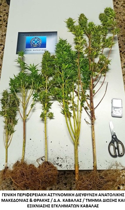 Στην πρώτη περίπτωση, την 23-9-2025 το απόγευμα σε δασική περιοχή της Καβάλας, αστυνομικοί της Ομάδας Δίωξης Ναρκωτικών του Τμήματος Δίωξης και Εξιχνίασης Εγκλημάτων Καβάλας συνέλαβαν έπειτα από κατάλληλη αξιοποίηση πληροφοριών έναν ημεδαπό, διότι τον εντόπισαν να καλλιεργεί -5- φυτά κάνναβης ύψους -1,2- μέτρων τα οποία εκριζώθηκαν και κατασχέθηκαν. Επιπλέον κατασχέθηκαν μία ηλεκτρονική ζυγαριά ακριβείας και ένα ψαλίδι που χρησιμοποιούσε ο συλληφθείς για την περιποίηση των φυτών.