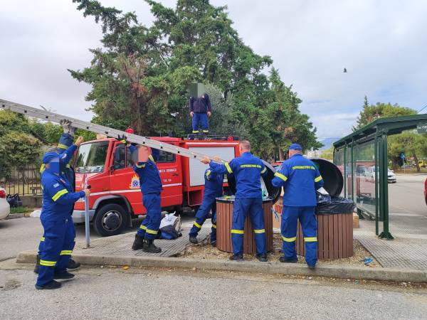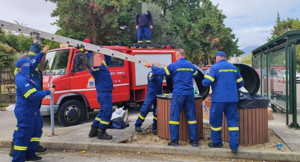 Η επέμβαση της Πυροσβεστικής ήταν άμεση και η γυναίκα με τη βοήθεια σκάλας που τοποθετήθηκε στο κάδο, κατάφερε να βγει χωρίς εμφανή τραύματα.