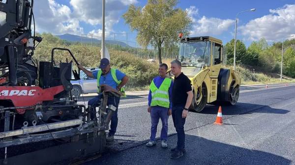 «Οι επεμβάσεις μας που αποσκοπούν στην ασφαλή και άνετη κυκλοφορία των οχημάτων συνεχίζονται αυτό το διάστημα με αντικατάσταση του ασφαλτοτάπητα σε μήκος 2,5 χλμ. της εθνικής οδού από το ύψος των Λουτρών της Απολλωνίας με κατεύθυνση προς τον οικισμό του Περιστερώνα», τόνισε ο κ. Γιουτίκας.