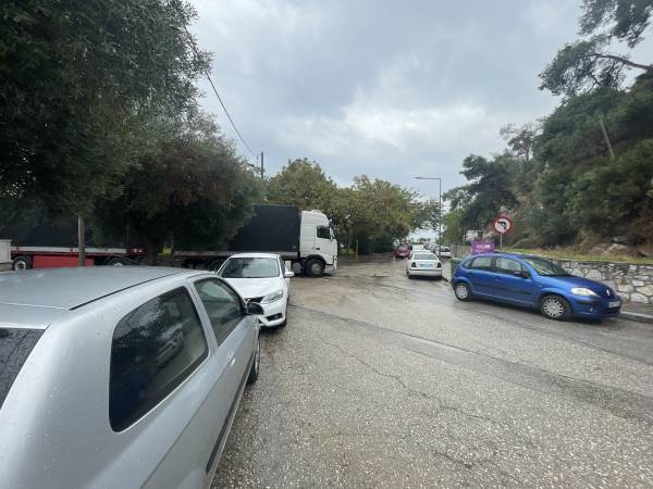 Μια νταλίκα κόλλησε το μεσημέρι της Κυριακής 19 Οκτωβρίου σε πάροδο της οδού Τενέδου πίσω από το άγαλμα του Πόντιου.