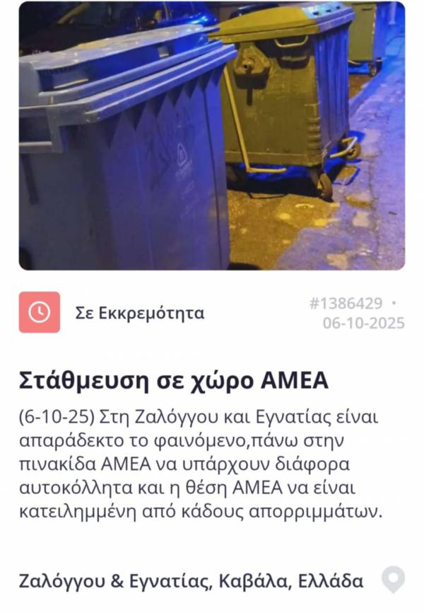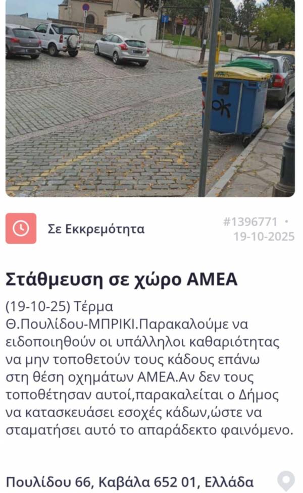 «Απαράδεκτες εικόνες, κάδοι σε θέση στάθμευσης οχημάτων ΑμεΑ, η μία στην οδό Ζαλόγγου και η άλλη στη Παναγία πριν το μπρίκι. Μας λυπεί το γεγονός ότι οι θέσεις για οχήματα ΑμεΑ είναι η εύκολη λύση για κάποιους.