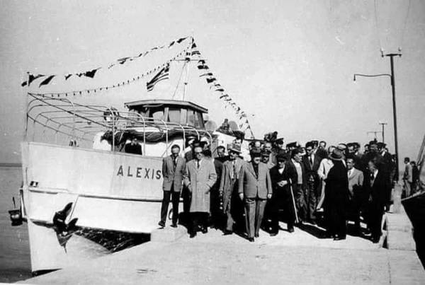 Στη φωτογραφία που ανάρτησε ο Θανάσης Αθανασιάδης διακρίνεται ο τότε βουλευτής Θάσου Θεολογίτης δίπλα στο πλοίο «Αλέξης» το 1960 στα εγκαίνια του ηλεκτροφωτισμού του Λιμένα.