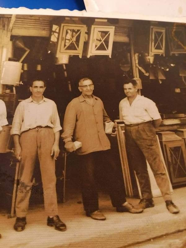Φωτο 2. Μπροστά στο τενεκετζίδικο του Γιωργου Κακάτση, δεξιά ο Γιώργος..Θυμάμαι παντως και τον μεσαίο, του μαγαζιου ηταν και αυτός.