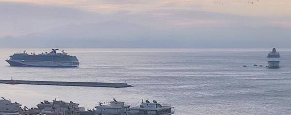 Δυο κρουαζιερόπλοια κατέπλευσαν σχεδόν ταυτόχρονα νωρίς το πρωί της Παρασκευής 31 Οκτωβρίου έξω από το λιμάνι της Καβάλας.