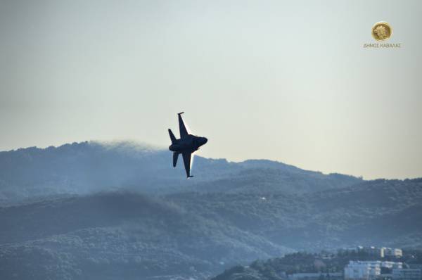 Το μαχητικό F-16 της Ομάδας «ΖΕΥΣ» πραγματοποίησε εντυπωσιακή διέλευση πάνω από το παραλιακό μέτωπο της Καβάλας, ολοκληρώνοντας την παρουσία του, περίπου 10 λεπτά αργότερα.