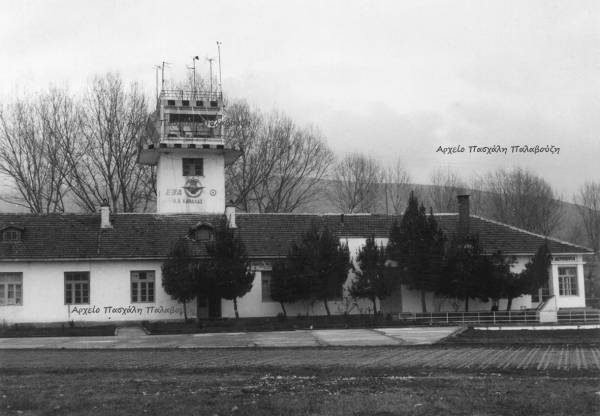 Ο πύργος ελέγχου στο αεροδρόμιο του Αμυγδαλεώνα τη δεκαετία του 60 με ζωγραφισμένο το θυρεό της (τότε) Ελληνικής Βασιλικής Αεροπορίας.