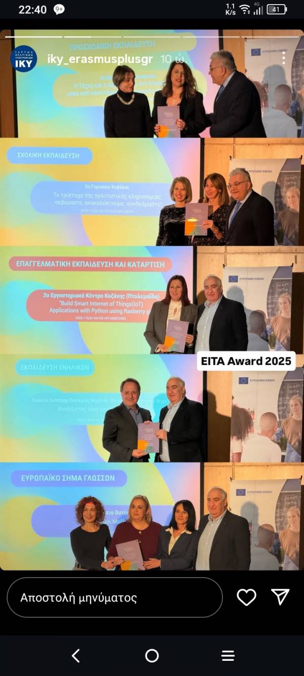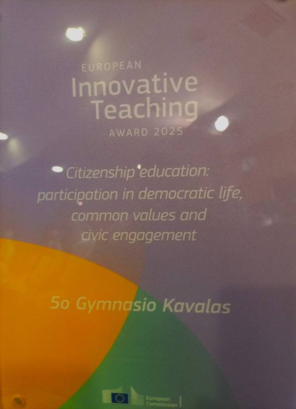 Το 5ο Γυμνάσιο Καβάλας τιμήθηκε με το Ευρωπαϊκό Βραβείο Καινοτόμου Διδασκαλίας (ΕΙΤΑ) 2025 για την επιτυχημένη υλοποίηση καινοτόμων εκπαιδευτικών έργων Erasmus+.