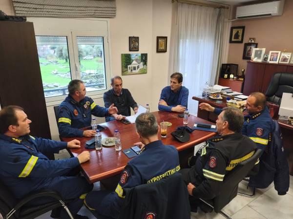 Στην συνάντηση συμμετείχαν επίσης, ο Προϊστάμενος του Πυροσβεστικού Κλιμακίου Θάσου αντιπύραρχος Σπύρος Δερβένης, και ο πύραρχος Νίκος Νικολόπουλος.