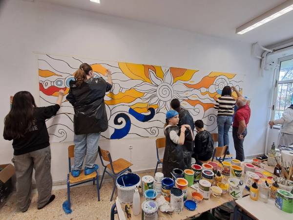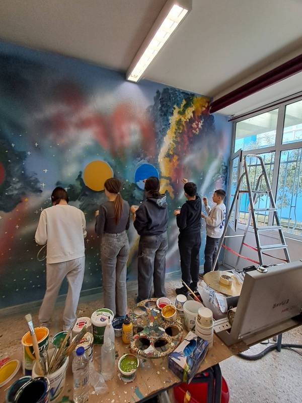 Ο Γιάννης Κανίογλου με μαθητές και γονείς των Β1 και Β2 του Γυμνασίου Λιμένα ζωγράφισαν τρεις αίθουσες του σχολείου.