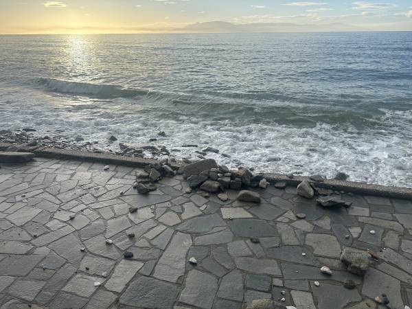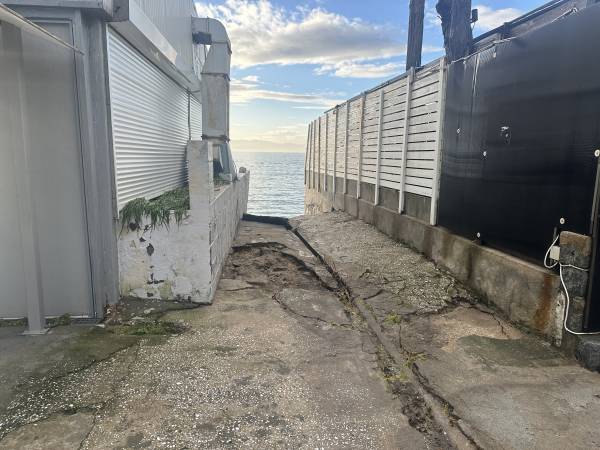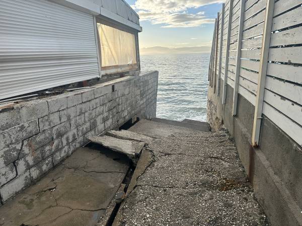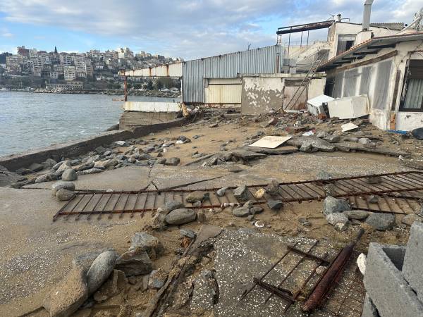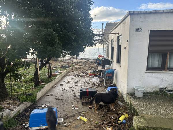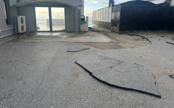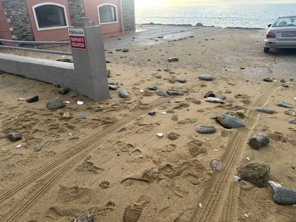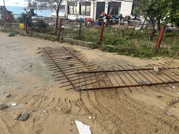 Από τη δύναμη του νερού που χτυπούσε αλύπητα τη στεριά, ξηλώθηκαν τέντες και φράκτες, σηκώθηκε η άσφαλτος η άμμος βγήκε μέχρι τον δρόμο.