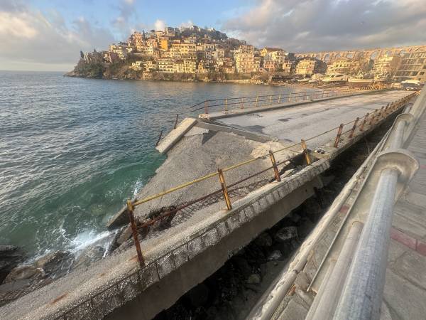 Η θάλασσα «καταπίνει» το κομμάτι της γέφυρας που υποχώρησε το 2018 (βίντεο)