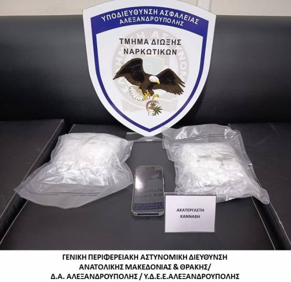 Σε δεύτερη περίπτωση, στις 15-3-2026 το βράδυ, στην Αλεξανδρούπολη, αστυνομικοί του Τμήματος Δίωξης Ναρκωτικών της Υποδιεύθυνσης Δίωξης και Εξιχνίασης Εγκλημάτων Αλεξανδρούπολης συνέλαβαν έναν ημεδαπό, διότι τον εντόπισαν να έχει παραλάβει δέμα από εταιρεία ταχυμεταφορών που περιείχε δύο συσκευασίες με ακατέργαστη κάνναβη, συνολικού βάρους -330- γραμμαρίων, οι οποίες και κατασχέθηκαν.
