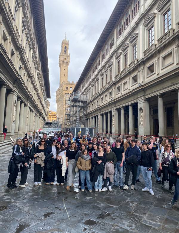 Η Ponte Vecchio ως διαχρονικό σημείο εμπορικών και οικονομικών συναλλαγών, η Piazza della Signoria, το Palazzo Vecchio, η στοά με έργα του σπουδαίου γλύπτη Bernini, όπως ο Περσέας με το κεφάλι της Μέδουσας και η Αρπαγή της Περσεφόνης και η προβολή του ελληνορωμαϊκού πολιτισμού μπροστά στα μάτια των μαθητών/-τριών μας, η γλυπτική τριπλέτα Ηρακλή-Δαβίδ-Ποσειδώνα που κυριαρχεί στην πλατεία, η Santa Croce με τους τάφους του Michelangelo και του Machiavelli, το μνημείο του πρωτοπόρου ανθρωπιστή Δάντη, το σπίτι του λίγο πιο απόμερα, η επιβλητική Santa Maria del Fiore, ο τρούλος του Μπρουνελέσκι και οι περιπέτειές του, το καμπαναριό του Giotto, Βαπτιστήριο με τις «Πύλες του Παραδείσου», όλα αυτά συνηγορούν στον χαρακτηρισμό της πόλης αυτής ως ανοιχτού και ζωντανού Μουσείου της Αναγέννησης και του Ανθρωπισμού, τις δυνατότητες (τεχνικές και θεωρητικές) της εποχής και των ανθρώπων της, των δυσκολιών (Μαύρος Θάνατος) και των δυνατοτήτων.