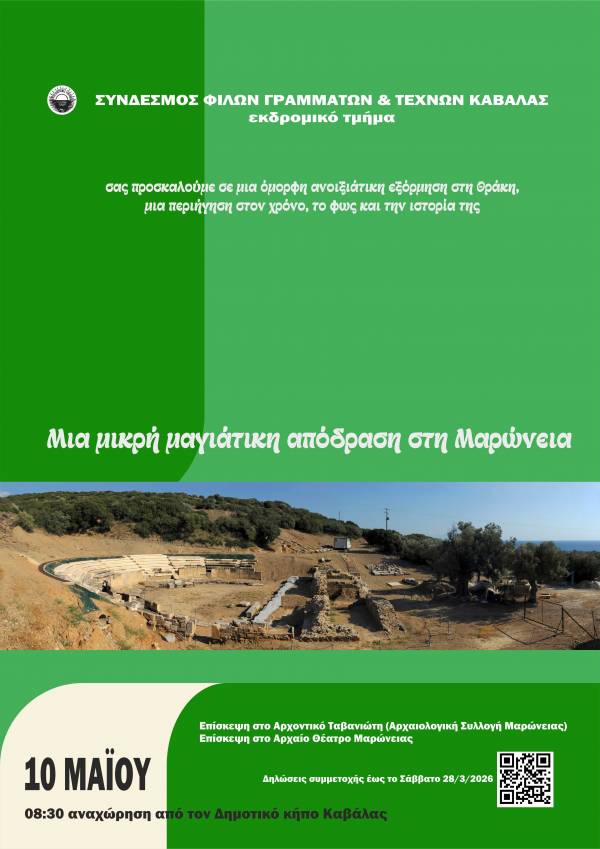 Ο Σύνδεσμος Φίλων Γραμμάτων και Τεχνών Καβάλας θα έχει μία ανοιξιάτικη εξόρμηση στη Θράκη, μια περιήγηση στον χρόνο, το φως και την ιστορία της.