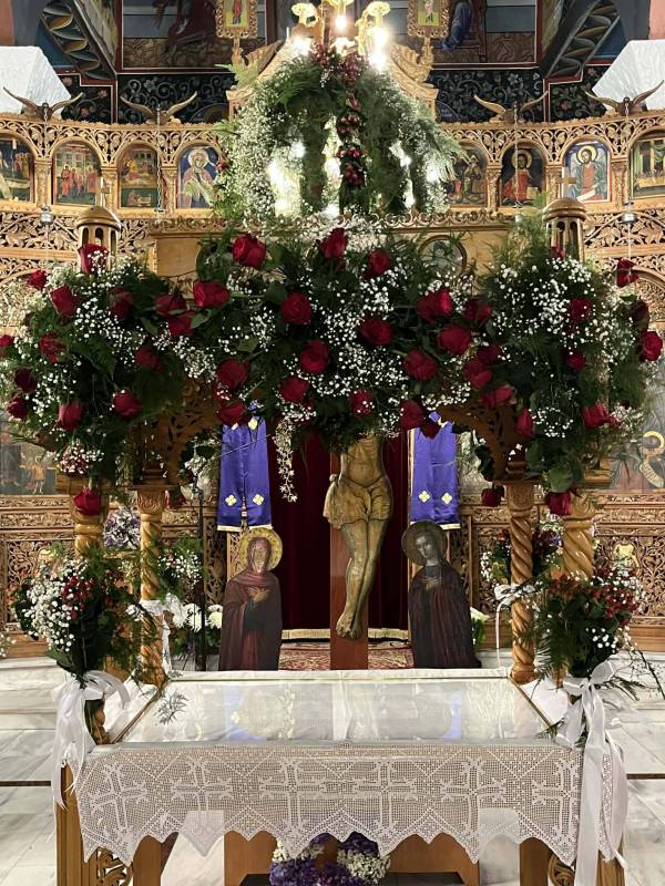 Παράλληλα εικόνες από τον στολισμό του επιταφίου στον ιερό ναό Κοιμήσεως της Θεοτόκου στη Μουσθένη, μοιράστηκε η Γεωργία Σεχτανίδου.